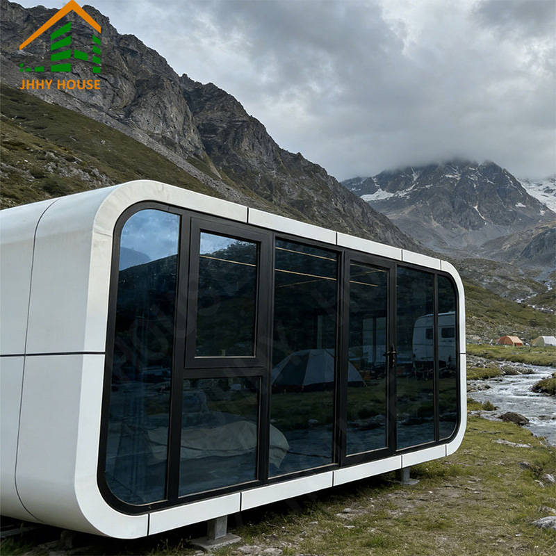 The main galvanized steel structural double frame Case aluminum plate (2.0mm) Shell surface treatment (fluorocarbon paint spraying process) 120mm polyurethane foam insulation Panoramic glass curtain wall (6+12A+6+12A+6 insulated low-e tempered glass) Panoramic glass oversized sunroof (6+6 laminated tempered glass+retractable canopy) Entry door (fire-rated steel door-with fingerprint waterproof combination lock) |