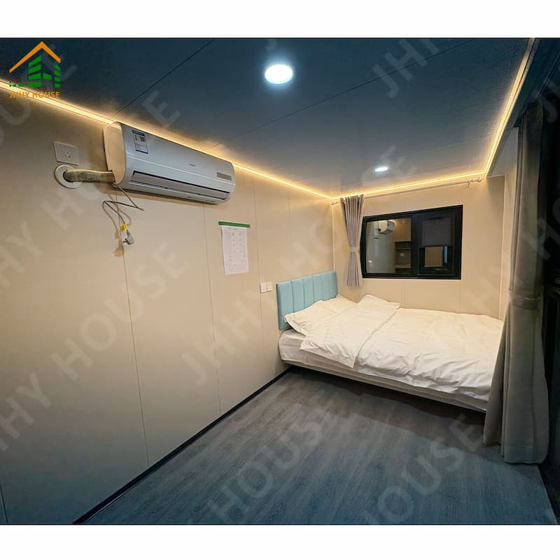 Suspended ceiling (OSB board+carbon fiber board) Interior wall surface(OSB board+carbon fiber board) board+carbon fiber board)Indoor flooring (SPc lock flooring) Underfloor heating systems Bathroom door(privacy sliding glass door) Washbasin (marble customized) Bathroom walls (SPC lock board) Bathroom floor (tiles) Furniture such as beds, nightstands, sofas, etc. (can be customized) |