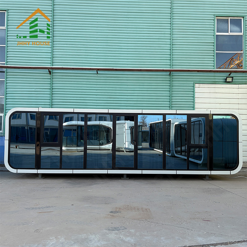 منازل حاويات جاهزة الصنع على شكل كبسولات أبل، مفروشة بالكامل، توفر الراحة، مثالية للحدائق والفنادق أو السكن.